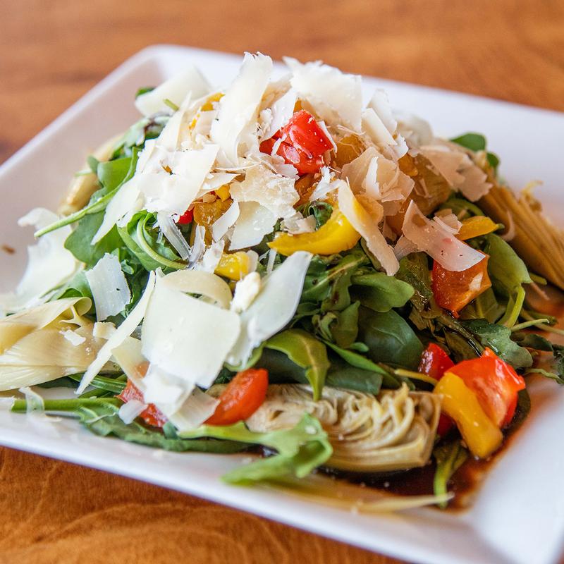 Spinach, arugula, artichokes, roasted peppers, parmesan, and honey balsamic vinaigrette.